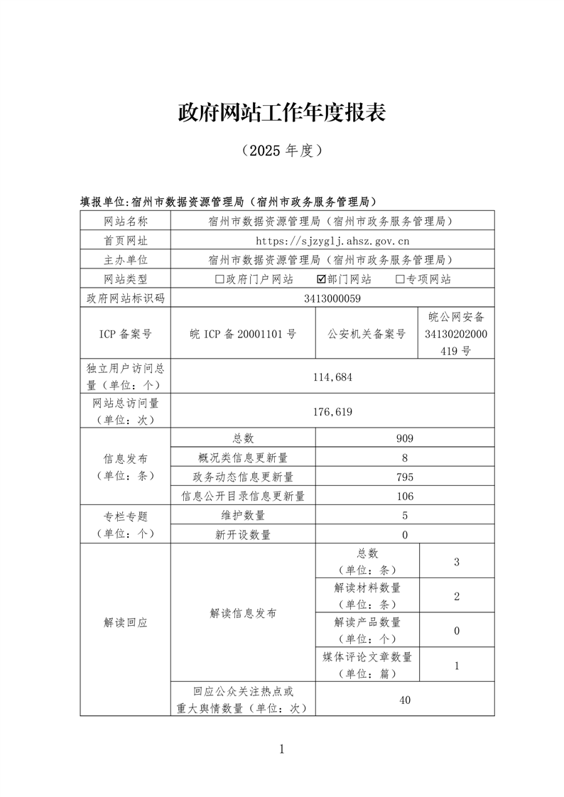 宿州市数据资源管理局2025年度政府网站工作报表 |